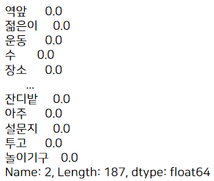 all_word 데이터프레임에서 2번째 인덱스를 뽑아보면 위와 같이 나오게 됩니다.