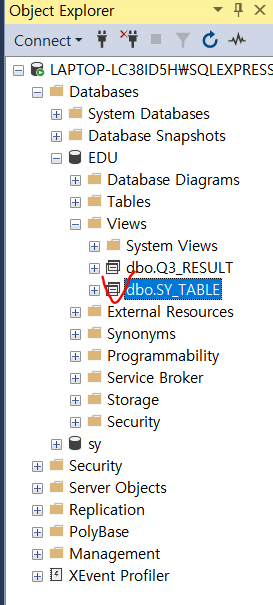 [EDU] 데이터베이스 - Views에 들어가면 만들어진 [SY_TABLE]을 볼 수 있다.