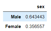 new = pd.DataFrame(tips['sex'].value_counts()/tips['sex'].count())