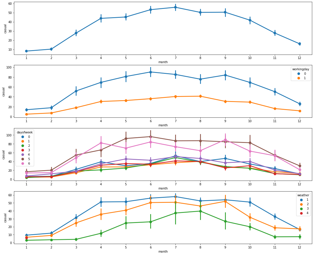 같은 그래프를 count가 아닌 casual로만 바꿔서 그려보았다. (코드가 길어 밑 부분부터는 사진만 첨부하였다)