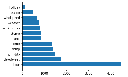 EDA 결과를 통해 hour가 가장 중요한 변수라고 했는데, LGBM 모델도 정말 엄청 중요도가 높게 설정하였다.