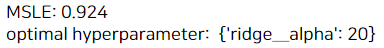 params={'ridge__alpha':[5, 10, 15, 20]}