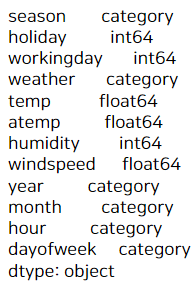 cate_name = ['weather', 'season', 'year', 'month', 'hour', 'dayofweek']