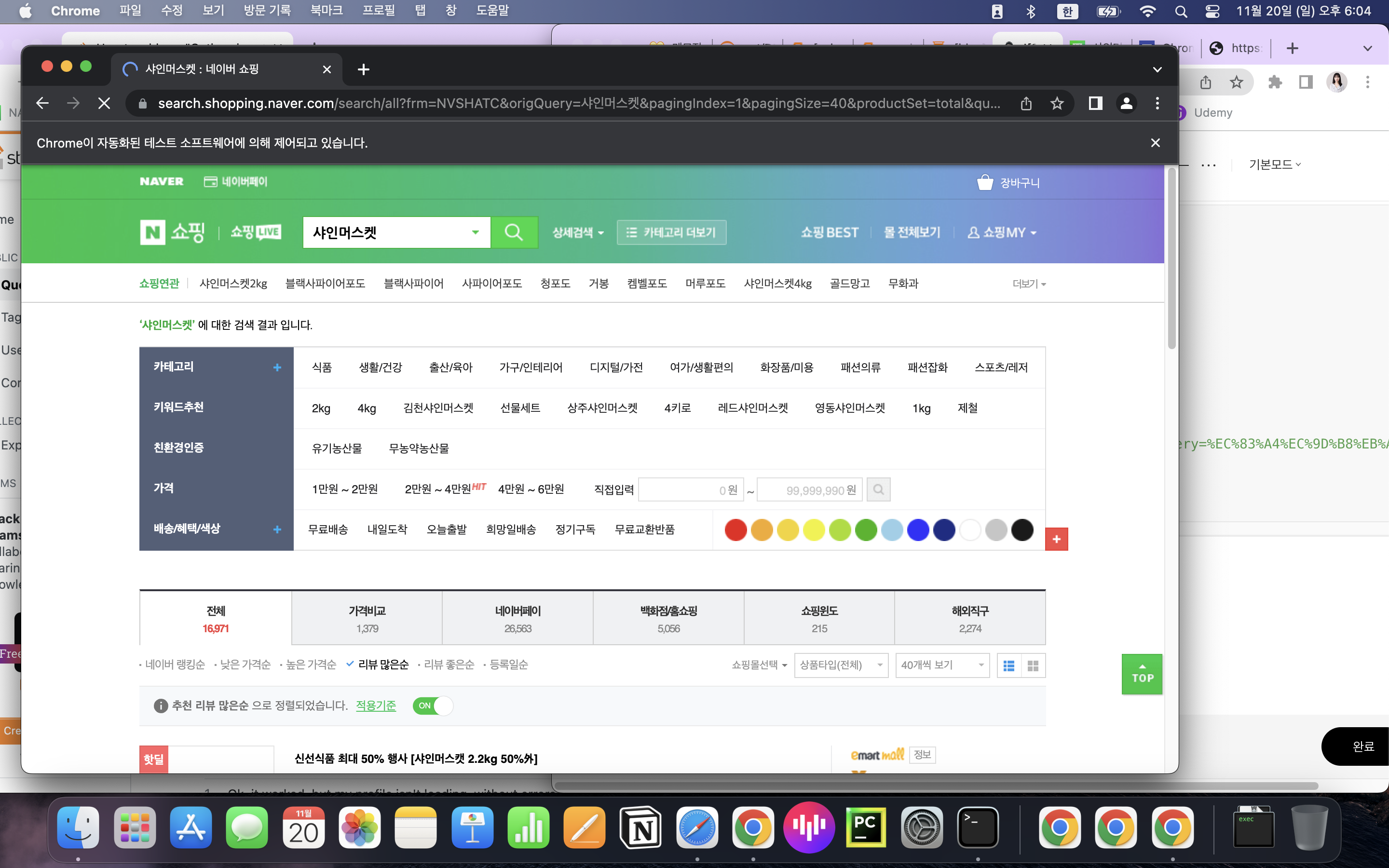 먼저 크롬드라이버를 활용해, 코드만으로 네이버 쇼핑 페이지를 자동으로 뜨게 할 수 있다. 다음을 입력한다.