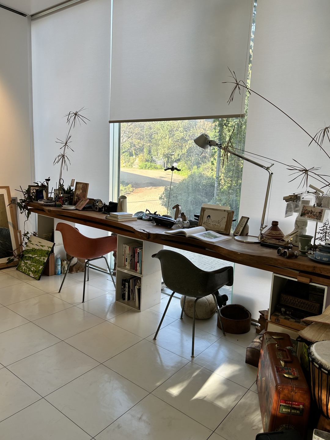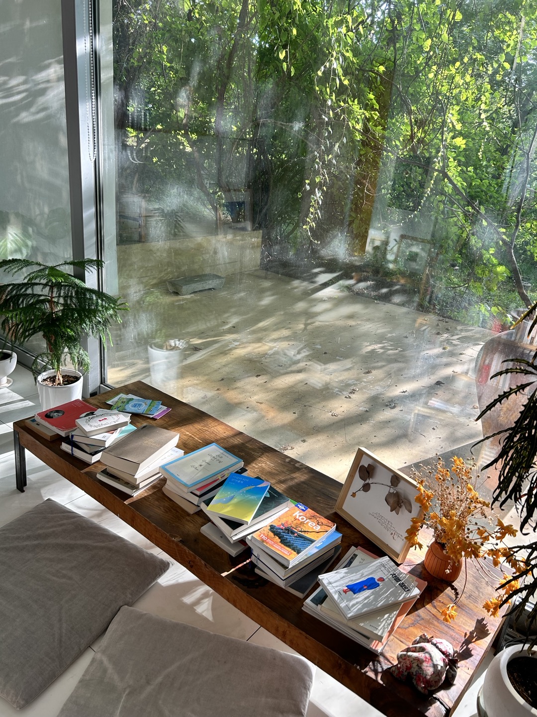 사진 속 이곳은 공용공간 중 하나였어요. 숲을 바라보며 앉아서 책을 읽을 수 있는 테이블이 있답니다.