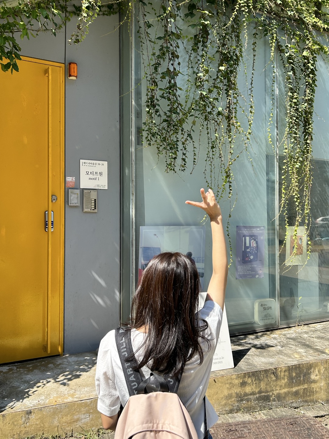 살짝 오르막길을 오르면 이렇게 2층집이 보이고, 노란 문이 달린 이곳이 모티프원입니다.