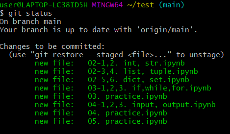 - git add 파일명 (여러개인 경우 git add *)