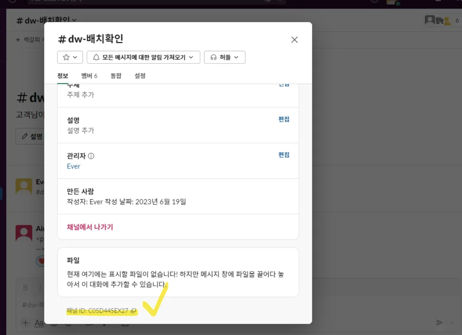 위의 "slack_channel_id" 를 인수로 받습니다.