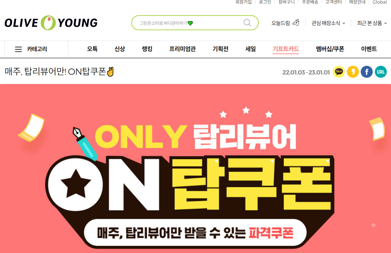 하지만 2022년인 지금도 올리브영은 탑리뷰어 혜택을 유지하고 있다. 아마 탑리뷰어들이 대다수의 유저들과 다르게 쿠폰을 뿌린 것 이상으로 굉장한 매출을 올려주고 있다는 인사이트를 발견했기 때문이 아닐까?