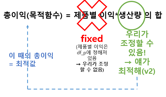 여기서 사용할 목적함수는 '이익을 계산하는 함수'가 되겠죠. 우리는 이익을 최대화하는 것이 목표니까요!