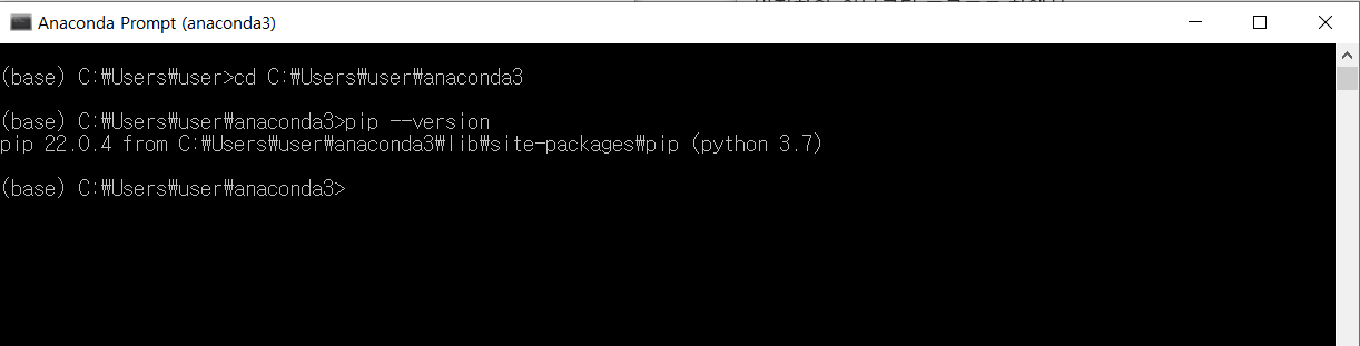 먼저 나의 python 버전과 pip 버전이 어떤지를 살펴보자. 아나콘다 프롬프트에 다음을 입력한다.