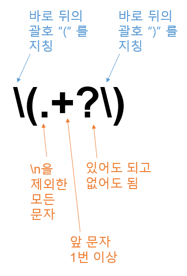 이렇게 위의 정규표현식을 사용하면 괄호 안에 1문자 이상 있으면 제거합니다. 결과를 보면 괄호와 괄호 안 문자가 모두 지워졌죠?